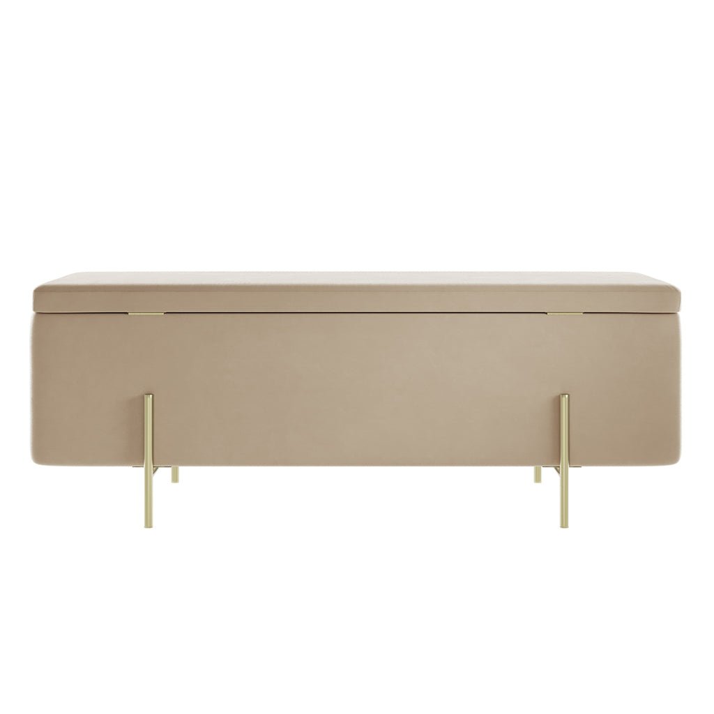 Soho Nordic Storage Ottoman Beige Velet & Brushed Gold