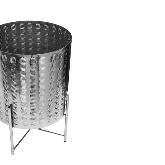 Zendaya Silver Embossed Metal Planter with Stand H25cm D25cm